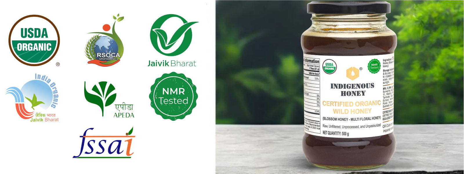 Worried about additives or adulteration? Our wild honey is completely free from antibiotics, heavy metals, and all forms of adulteration. In addition, every batch is tested using SMR (Specific Marker for Rice syrup) and TMR (Trace Marker for Rice syrup) methods to ensure there is no sugar-syrup adulteration of any kind. It's not just any organic honey; it's certified organic wild honey that bears the seal of approval from recognized certification bodies of APEDA, RSOCA and ONECERT.